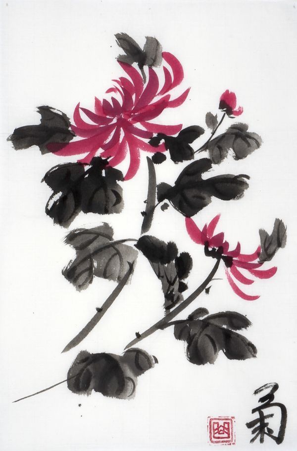 G730119 Ostasiatische Tuschemalerei - Pflaumenblüte und Chrysantheme